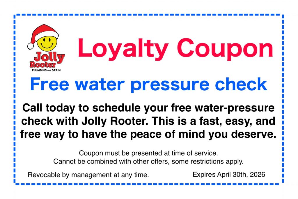 Jolly Rooter will Check Your Water Pressure for free with the coupon.